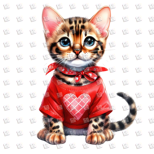 Valentines Cat With A Red Heart Shirt - Valentines - DTF Transfer