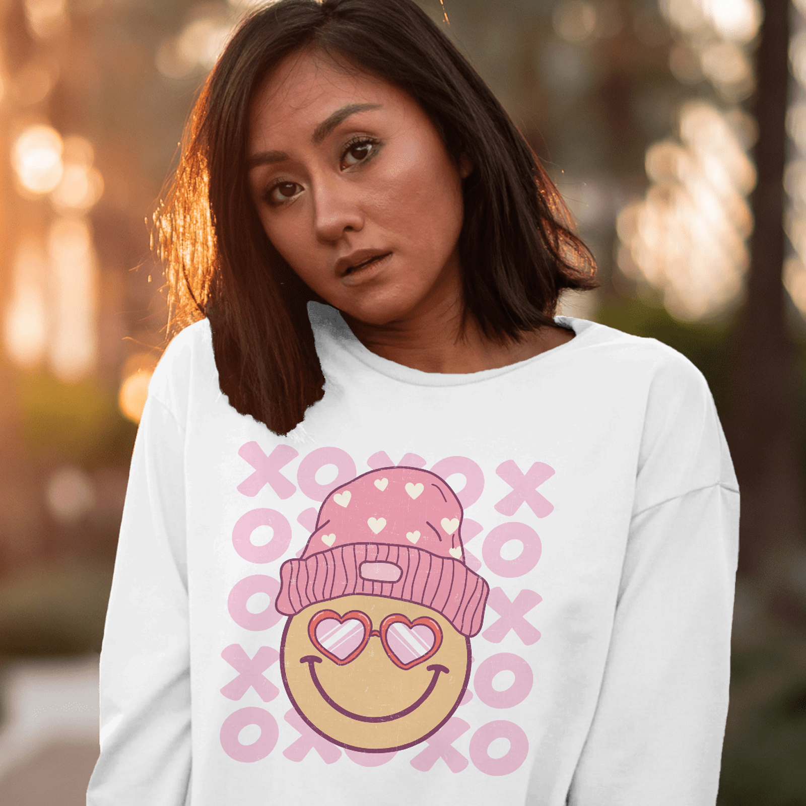 XOXO Smiley Face With Glasses and Hat` - Valentines - DTF Transfer